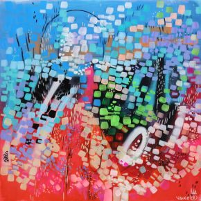 Robb Romero is a self-taught artist from Des Moines, Iowa. He studied at the University of Iowa, earning degrees in English, philosophy, and gifted education. He started sharing his artwork professionally in 2016. His mixed media art uses the tools and techniques of graffiti to explore his own limitations: time and color. ️